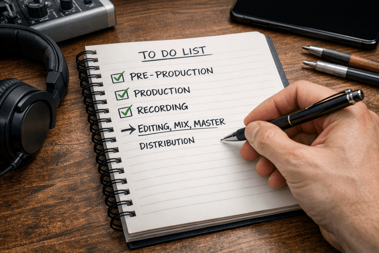 To establish the roles of the tracks and get an overall vision of the song, export (bounce) the entire track. Name it [ARTIST NAME] – [SONG NAME] – Rough Mix.